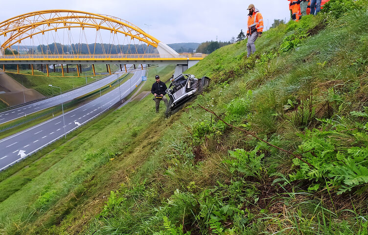 FB Serwis stanęła przed poważnym wyzwaniem: wykaszaniem przydrożnych skarp o nachyleniu sięgającym nawet 60° na południowym odcinku autostrady A1. Dotychczasowa praca z użyciem tradycyjnych kos spalinowych była nie tylko mało wydajna, ale także niebezpieczna dla operatorów. Większe kosiarki spalinowe nie radziły sobie w tak ekstremalnych warunkach terenowych, co powodowało opóźnienia, zagrożenie zdrowia pracowników i zwiększone koszty operacyjne.